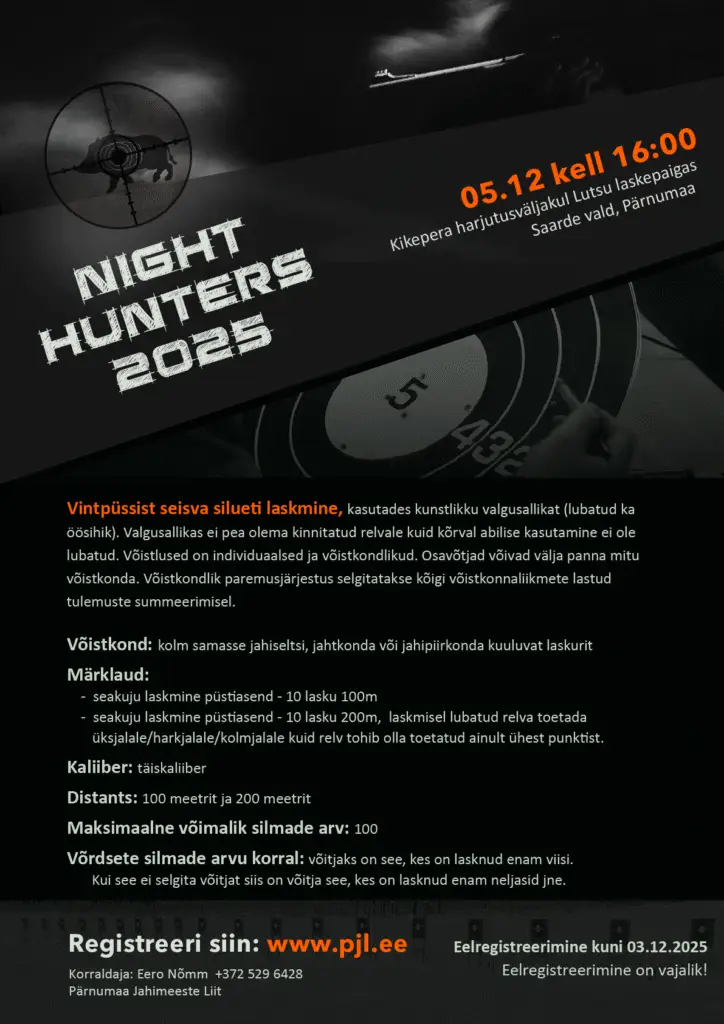 Vintpüssist seisva silueti laskmine, kasutades kunstlikku valgusallikat (lubatud ka öösihik)